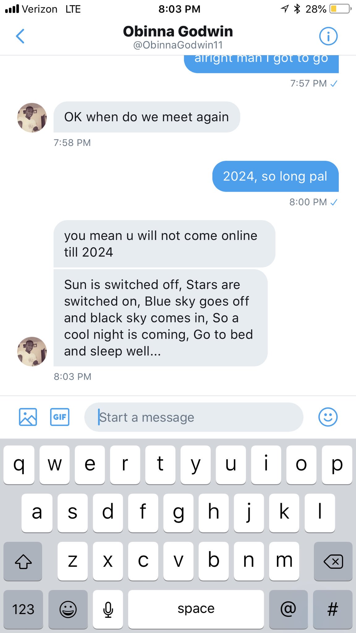 gregg on X: “this dude sends me nicer goodnight texts than my gf